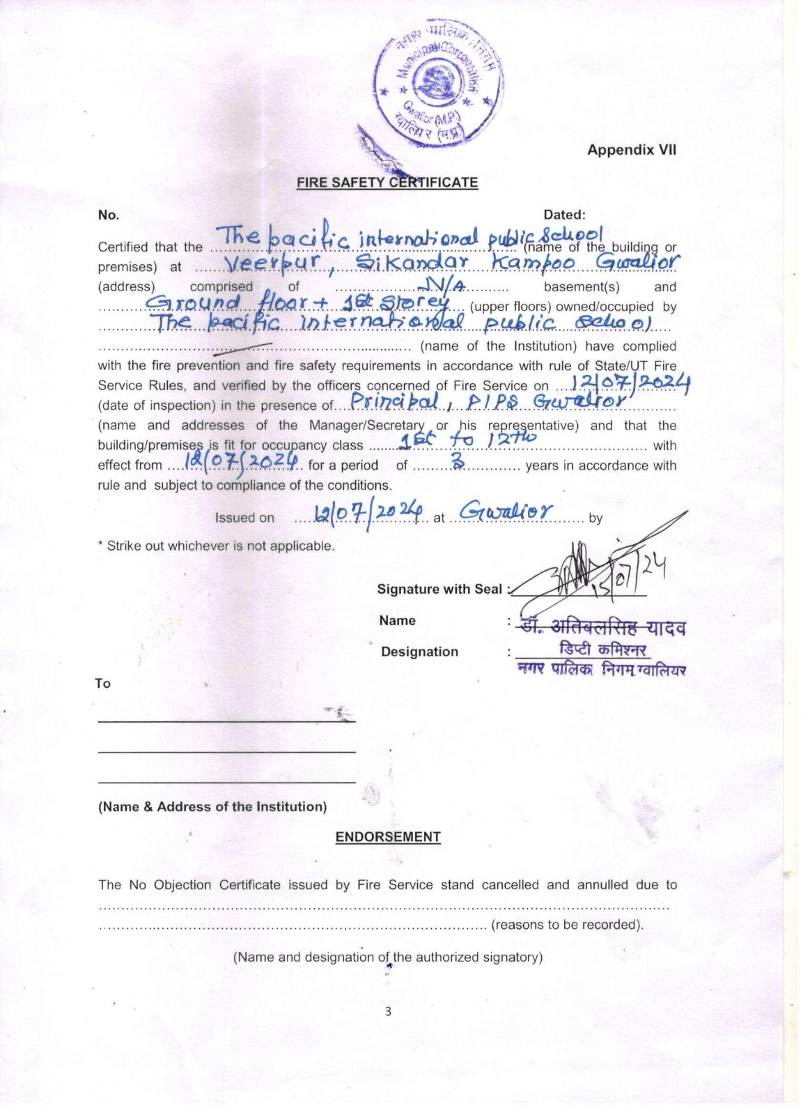6 COPY OF VALID FIRE SAFETY CERTIFICATE ISSUED BY THE COMPETENT AUTHORITY View