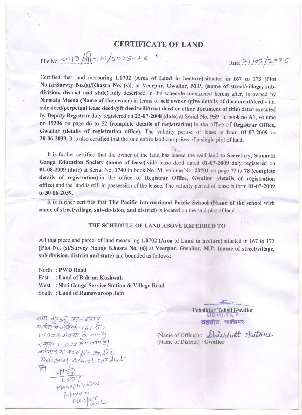 THE PACIFIC INTERNATIONAL SCHOOL GWALIOR